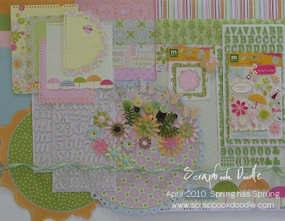 April 2010 Kit - Spring has Sprung is now available! Click Here to see more photos and a complete list of contents. This kit features papers and embellishments from Making Memories Flutter Collection, Embellished butterflies from Jenni Bowlin, and two American Crafts Thickers Alpha Stickers (Foam & Chipboard). This kit is perfect for Spring layouts, cards & altered projects!